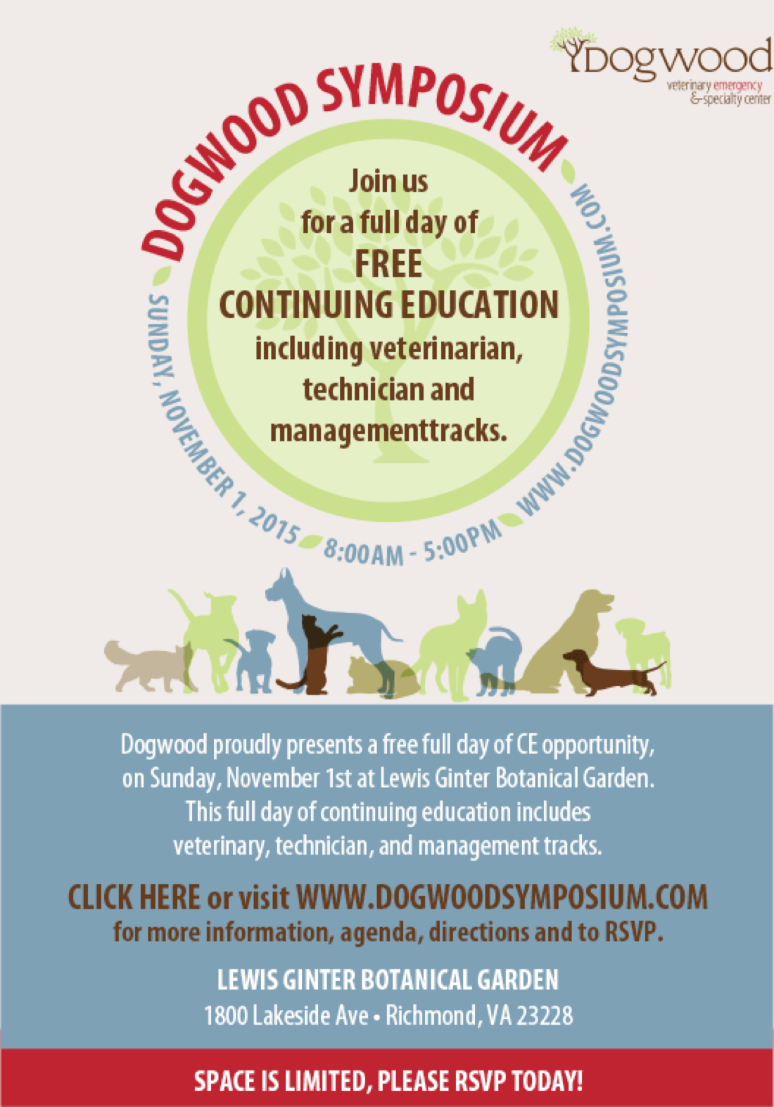 Another large-scale event I planned in the Richmond area was the 2015 Dogwood Symposium, a full-day, multi-track event for veterinarians, technicians and practice managers. Here are marketing items from the event.
